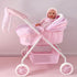 - The pack includes: 1 doll's stroller from the Sophie line in pink with white and gray details, padded fabric, padded bows, embroidered details, decorative natural wood buttons, matching bag with natural wood handles, fabric storage tray, mattress, cover with small pocket, foam-covered wheels and many more luxurious details.